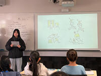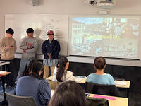 授業の最後には、明日と明後日の学校訪問で披露する学校紹介プレゼンのリハーサルを行いました。