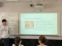 また、日本の祝日と比較しながら英語で話し合いました。生徒たちにとって、祝日の背景を通して、両国の歴史や大切にしているものの違いに気づく機会となりました