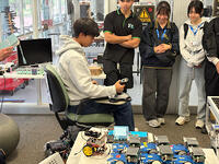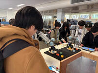 会場には、セグウェイのように動く乗り物や3Dプリンター、遠隔操作の小型自動車など、最新の技術が展示されており、生徒たちは興味津々の様子でした。ロボットのアームを実際に操作する体験もあり、思い通りに動かす難しさと面白さを感じながら取り組んでいました。