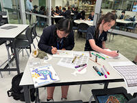 生徒たちはバディと一緒に、キャンバスに作品を描いていきます。形や記号などを用いて、それぞれの感性で自由に表現しました。