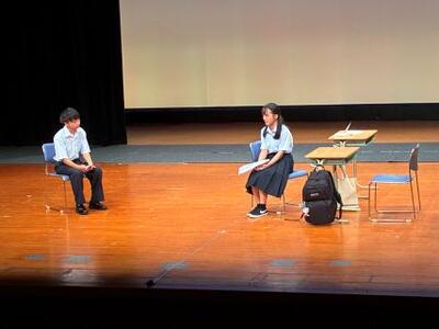この日のために、部員たちは8月後半から台本を作成し、稽古を続けてきました。当日は今までで一番の出来栄え。残念ながら県大会出場はかないませんでしたが、審査員の方からは、地に足のついた演技とお褒めのお言葉をいただきました。 この悔しさをバネに、次は12月27日郷の音小ホールで「三田空襲を忘れない」を上演いたします。保護者の方々、温かいご声援をありがとうございました。