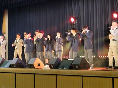 11月14日(金)午後、創立記念芸術鑑賞会が実施されました。今年はアカペラグループ「チキンガーリックステーキ」さんをお招きして、男性合唱を披露していただきました。身体全体で楽器を奏でているような美しいハーモニーに生徒たちも魅了されていました。途中、希望する生徒がステージに立ち、アカペラを体験しました。リードボーカル、ハモリ、バスなどを担当し、初めて合わせるとは思われない、素晴らしいハーモニーを奏でました。