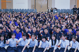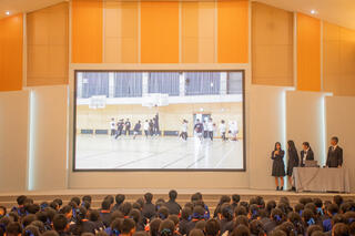 続いて、全員が英語で自己紹介。タイ語を交えた生徒もいました。ホールには400名を超える生徒が集まり、私たちを歓迎してくれました。