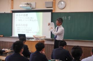 考査終了後は、大講義棟で合同LHRを行いました。まず増本先生から、この秋に取り組んだ「+15minutes」についてお話がありました。皆さんの取り組む姿勢はどうだったでしょうか。音楽の歌詞にもありましたが、「続けることの大切さ」を改めて伝えてくださいました。