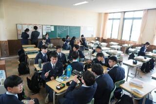 今日で、今年の授業も終了です。お疲れさまでした。明日は大掃除と全校集会、年次集会・LHRで終わりとなります。この時期、7限になると窓から夕日が差し込み、少し感傷的な気持ちになるのは、僕だけでしょうか。特に4~6組側は遮るものがないため、教室いっぱいに光が広がります。3階にいる1年次ならではの風景ですね。