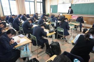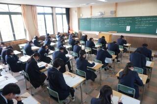 国語80分、英語80分、数学100分と、普段の考査よりも長時間の試験となりました。始まる前は「そんなに長く集中できるかな」と心配していた人もいましたが、どの教科でも最後の最後までペンを動かしている姿が見られました。長い時間、集中して考え続けられるようになったのは、皆さんの大きな成長です。