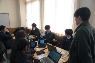 授業も、定期考査後はすべて特別時間割となるため、今年度最後となる授業が増えてきています。情報の授業では、この1年のまとめを作成し、グループで話し合いながら振り返りを行っていました。