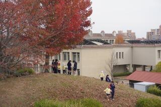 今週は、北摂学園幼稚園の年長さんが来てくれました。子どもたちは本当に元気いっぱいですね。走り回る幼稚園児を、高校生が一生懸命追いかける姿がとても微笑ましかったです。紙飛行機を飛ばしたり、どんぐりを探したりと、子どもたちも高校生も楽しそうに過ごしていました。