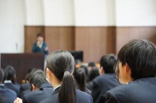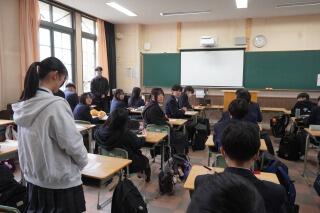 その後の全校集会では、生徒指導部長から話がありました。少しずつルーズになってきていないか、ルールを守る意識をしっかり持ってほしい、という内容でした。1年が終わりに近づく中で、慣れが悪い方に出ていませんか。もう一度、自分自身を見つめ直してみてくださいね。
