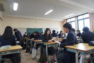 その後のLHRでは、通知票を配布するとともに各クラスで最後の時間を過ごしました。1年間のクラス生活はどうでしたか。楽しい思い出がたくさんできたのではないでしょうか。別れるのは少し名残惜しいかもしれませんが、高校生活はまだまだ続きます。2年次になっても、これまでにつながった絆を大切にしながら、さらに新しい絆を広げていきましょう。