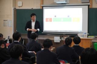 増本先生からは進路ガイダンスとして,進路スローガンや年間スケジュール,スタサポの結果について話がありました。学力が上がってきていることは素晴らしいことですが,学習習慣にまだ課題があることが心配です。