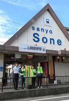 山陽曽根駅前、県道松陽交差点(コープ西側)