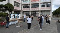 美化活動は「SHOYO」の花文字を植え替えました。色とりどりの可愛い花文字になりました。