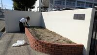 また通用門花壇には造園会社に依頼して低木を植栽しました。