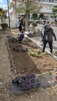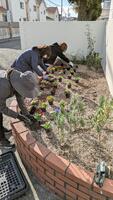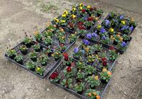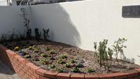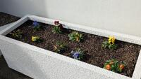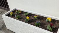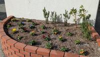 正門と通用門の花壇に色とりどりのパンジーとビオラを植え、とっても華やかになりました。お手入れしながら、春まで綺麗に咲いてくれますように…