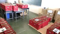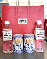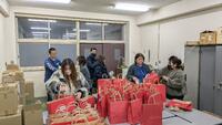 災害非常食として備蓄していた「松の陽だまりパン」と「長期保存水」を卒業記念品として卒業生に配付するために、袋詰めをしました。