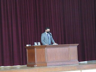 ALTのJ.J先生が自国に戻られます。先生は、本校での思い出をわかりやすい日本語で、お話されました。ありがとうございました。