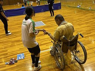 ニュースポーツを通して、年齢、性別、障がいの有無に関係なく交流を図るイベントで、ボランティア部は2つの競技(おじゃビンゴ・ブラインドソード)の運営をしました。