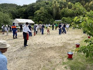 6月5日(日)、鴻ノ池公園にて行われた自治会の防災訓練に参加しました。消火器の使用訓練や消防車からの放水訓練など、普段経験できない体験ができた他、松の陽だまりパンの紹介、販売、募金活動を行いました。