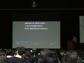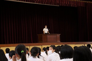生徒に向けて、「日々のあたり前の幸せやありがたさを感じる心を持ってほしい」「誰かの健康や平和を願える人になってほしい」などの言葉もいただきました。ありがとうございました。