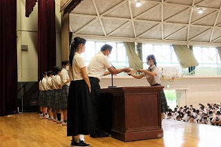 7月20日は、校長先生から才能を磨くことの大切さを教えていただきました。2学期に一段と成長した姿で再会できることを楽しみにしています。終業式の後、表彰式と壮行会も開かれました。より一層の活躍を祈ります。