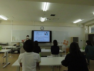 11月10日(木)、生活文化科1年生を対象に生活産業講演会を開催しました。講師に、介護福祉士の森久美先生をお迎えし、主に介護福祉士の職業や実際の介護についてお話を聞きました。
