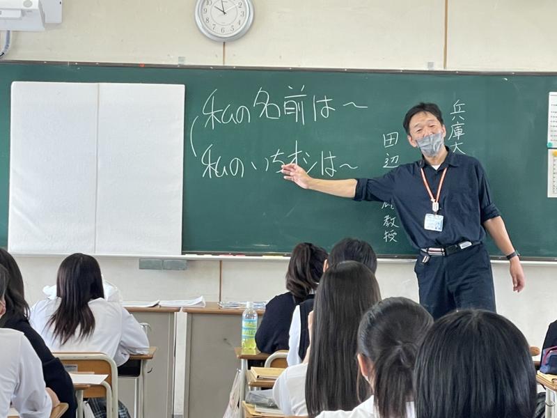 生活産業基礎の授業では、衣食住の各産業にかかわるスペシャリストをお招きし、さまざまなお話をしていただきます。第1回目は食生活関連産業に携われておられる、みかしほ学園 日本調理製菓専門学校の帽田陽先生にお越しいただき、専門分野のお話をしていただきました。食生活関連産業は身近であるため非常に興味深く、将来の職業を考えるきっかけにもなったようです。