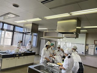 10月2日(日)、生活文化科3年生の「課題研究」食物班が曽根公民館にて子ども食堂を開催しました。毎月第一日曜日に曽根公民館で子ども食堂をされている、「きっず・きっちん そね」の方々のご協力のもと、生徒が企画・運営しました。