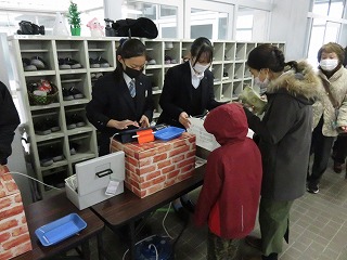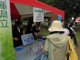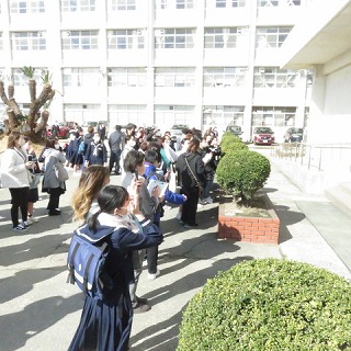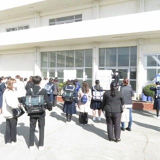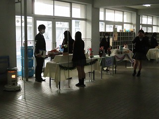 12月6日(火)、コープ高砂店内つどい場において、2年生普通科の総合的な学習の時間の一環として「防災避難訓練を企画する」をテーマに取り組んでいる6名の生徒が、防災教育ボランティアを行いました。