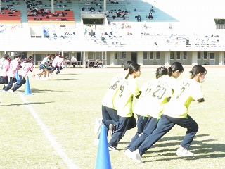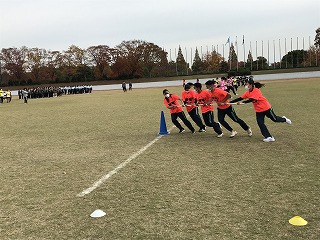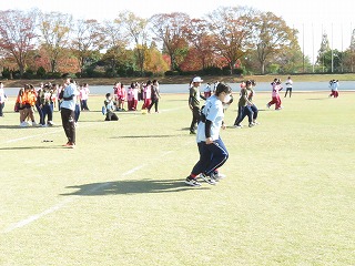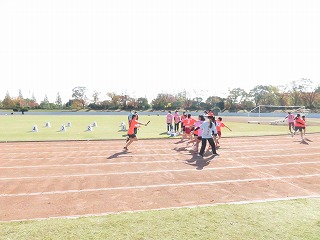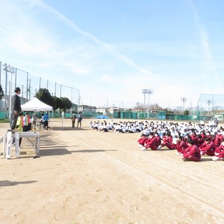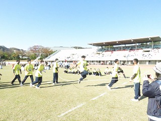 11/17 晴天の中、体育大会(予選)を高砂市 陸上競技場で行いました。校長先生から、クラスのみんなで協力してテッペンを目指すことが大切と開会あいさつの後、元気な選手宣誓で、気合がはいりました。