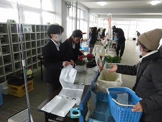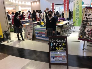 本校 商業科・普通科有志6名が「松の陽だまりパン」を販売実習した。予定していた分すべて完売した。