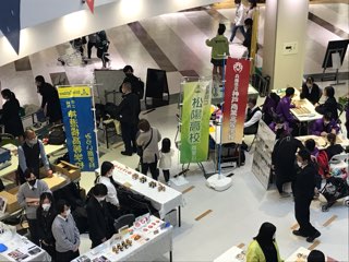 11/23 神戸市垂水区 ブルメール舞多聞で行われた兵庫県高等学校商業教育協会主催の商業教育フェアに参加して、本校は、陽だまりパンを販売しました。また、缶バッチ作りのワークショップも行いました。