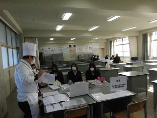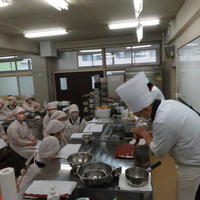 3年生の調理の授業で、みかしほ学園の田中先生をお招きし、コース料理の模範実習をしていただきました。食物技術検定1級合格に向けてメモを取りながら熱心に講義を受けていました。プロの技を実際にみる貴重な経験となり、とても有意義な時間となりました。