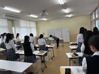 6月22日(木)生活文化科3年生「消費生活」の授業にて「大原保育スポーツ医療専門学校 姫路校」の髙木先生をお招きし、ビジネスマナー講習会を行いました。電話の受け答え・伝言メモの要点等を教えていただきました。名刺交換では、2人1組になりシナリオを使いながらやりとりをする等、実際にビジネスシーンで必要となる言葉遣いについて学びました。