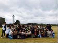 東平安名崎では、平安名崎灯台を背景にクラス写真を撮りました。風も強かったのですが、54回生のチームワークで声を掛けながら乗り切ることができました。