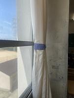 タッセルフックがなくても使用できるように、クルミボタンでとめることができます。