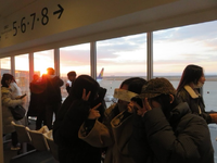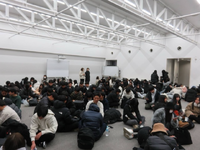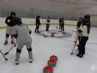 昼食後は班別の行動となりました。カーリング体験班は苫小牧のスケートリンクを訪れ、現地のスタッフの方から投球やスウィーピングの基本、ルールについて指導を受けました。練習後のミニゲームでは、兵庫県では触れる機会の少ない氷上スポーツの難しさと楽しさを、身をもって学ぶことができました。