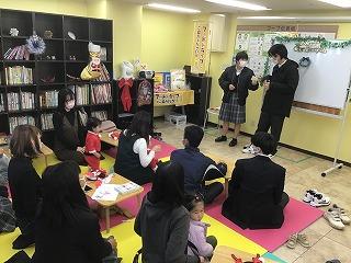 12月6日(火)、コープ高砂店内つどい場において、2年生普通科の総合的な学習の時間の一環として「防災避難訓練を企画する」をテーマに取り組んでいる6名の生徒が、防災教育ボランティアを行いました。