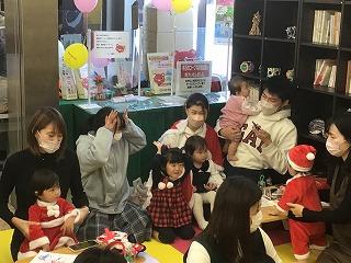 定期的にこの場で活動されている子育て支援団体にご協力いただき、防災ゲーム「防災ダック」を高校生がアレンジして一緒にゲームをしました。