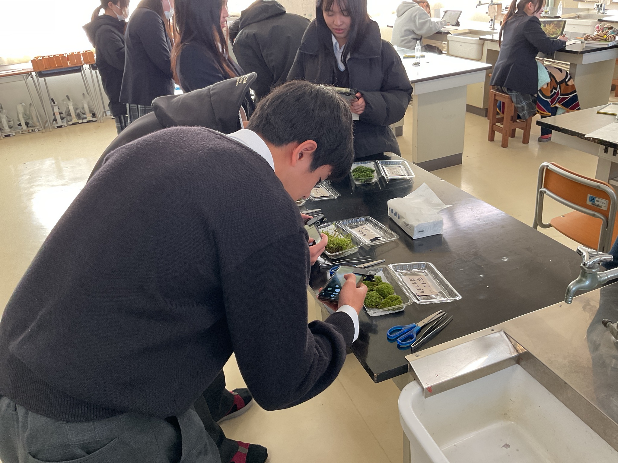 生物の授業で苔の観察と苔テラリウムの作成を行いました。