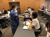 防災士の先生2名にお越しいただき、班に分かれて各個人がそれぞれ架空の人物になりきります。台風が近づいてきて、災害の危険性が高まったときどのように行動するのか。自分のことだけではなく、家族などの安全も考えどの時点でどのような行動をとるべきなのか、このシミュレーションをワークショップ形式で考えました。
