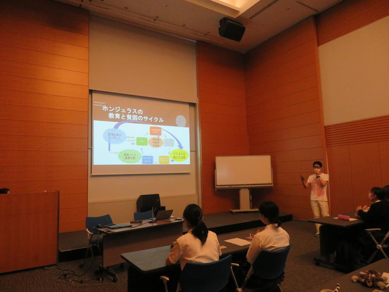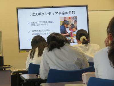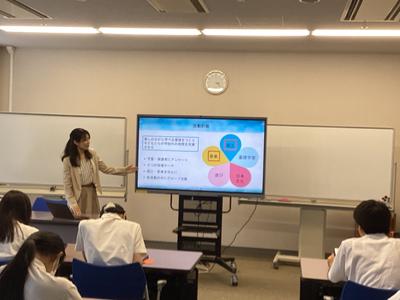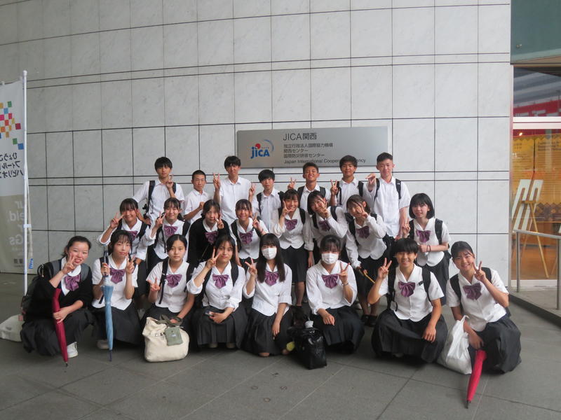 JICA関西の職員の方から事業の説明を受けたのち、実際にフィジーに小学校教員としては派遣された林氏に貴重な体験談を聞きました。現地の様子、フィジーの言葉、フィジータイムなど日本との違いに驚いていました。また、SDGsについて、JICAの方のお話、展示室にあった数々の資料から、今後、探究活動に関わることにも学びを深めることが出来ました。