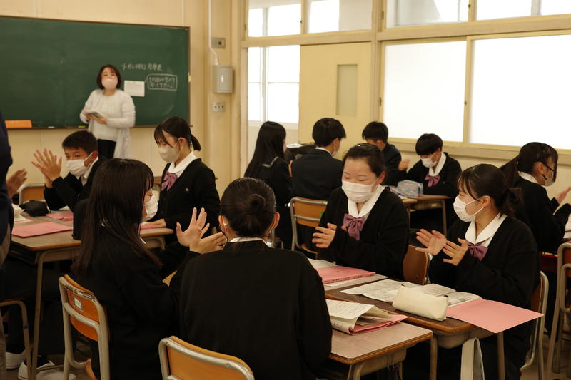 SDGs探究や校外学習の内容など真剣な面持ちで、教員の話を理解しようと耳を傾けます。