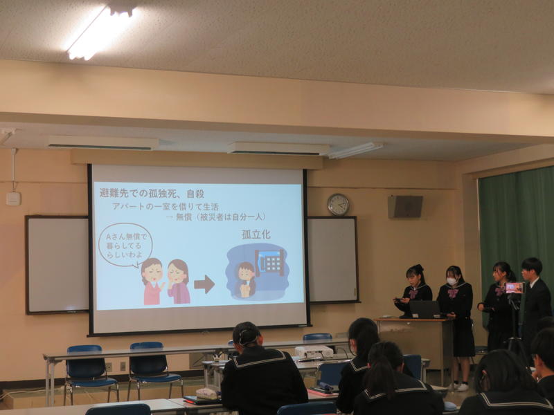 1年生リーガルマインド類型の生徒は今日が2回目の防災教育です。
