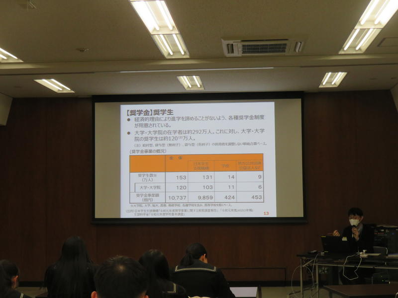 最後には「高校生のための金融リテラシー講座」と題してお話をしていだきました。今後のライフプランや金融に関する契約についてなど様々な角度からお話をしていただきました。とても貴重な時間となりました。今後にぜひ活かしていきましょう。