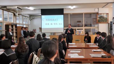 最初に教頭先生からリーガルマインドを学ぶ意義や今後の活躍を期待するメッセージをいただきました。