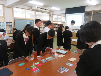 1学期中間考査最終日の5月27日(火)午後、朝日新聞社より講師の先生をお招きし、「2030 SDGsカードゲーム」を行いました。