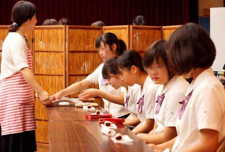 お茶席を楽しんだ後は、お運びの当番です。