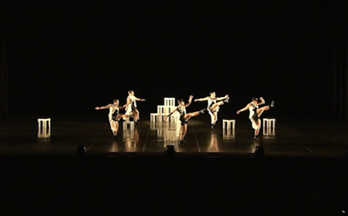 作品は、階段をモチーフに創作。一歩ずつ踏みしめるように地道な努力を重ね、経験を積み上げる自分たちの様を表現しました。階段を想起させる舞台美術を配した空間構成と個の表現が際立つ展開。群舞が多い高校ダンス部作品のなかで「自分たちにしかできない」オリジナリティを追求、挑戦しました。