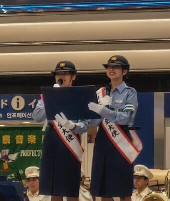 パフォーマンス後は、県警音楽隊の演奏に飛び入り参加をしたり、一緒に踊ったりと部員たちもとても楽しい時間を過ごすことができました。